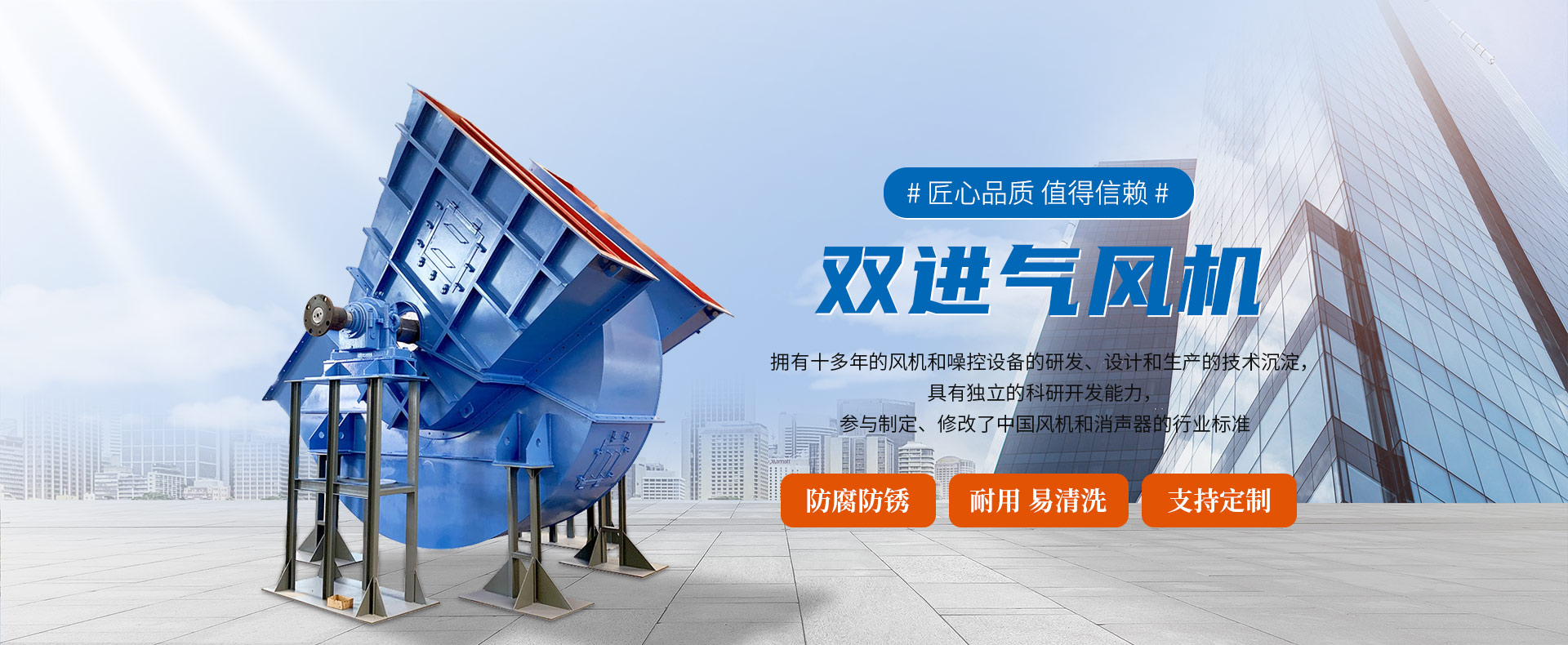 公司主營產品有離心風機、軸流風機、排煙風機、消聲器、靜壓箱。產品廣泛應用于污水處理、氣力輸送、電廠脫硫除塵、水產養殖、水泥、化工、冶金等行業。